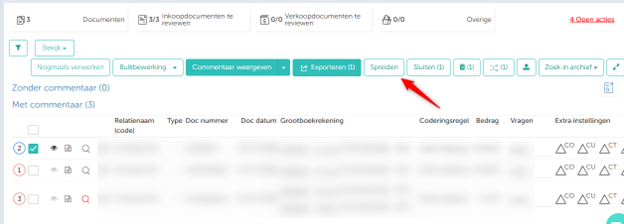 - Op de pagina ‘Review’ kunnen spreidingsinstellingen slechts op één factuur tegelijk worden toegepast. Het is niet mogelijk om meerdere facturen te selecteren en spreidingsinstellingen in bulk toe te passen.